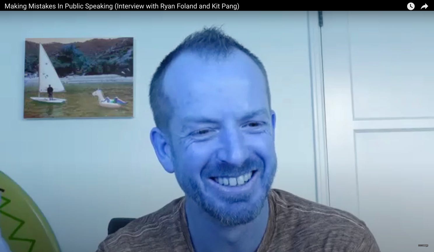 When I was on Kit’s podcast, Boston Speaks, my camera malfunctioned, and I literally turned blue on screen. No matter what I did, I couldn’t fix it. So, I leaned into it.